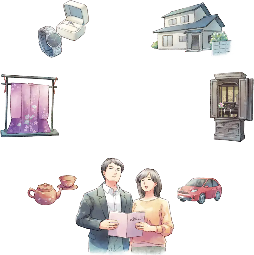 生前整理に伴う貴重品・リユース品の買取、不要品の回収、整理収納アドバイス、引越しをサポートします。
