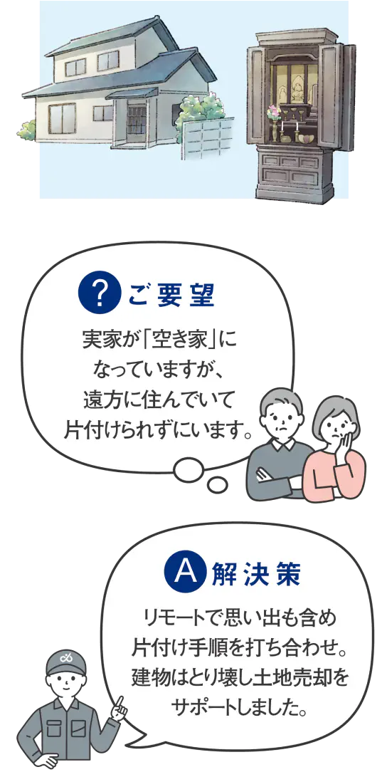 - 終活に関する整理 大型家具の移動・処分、家電の買取、お墓に関するご相談